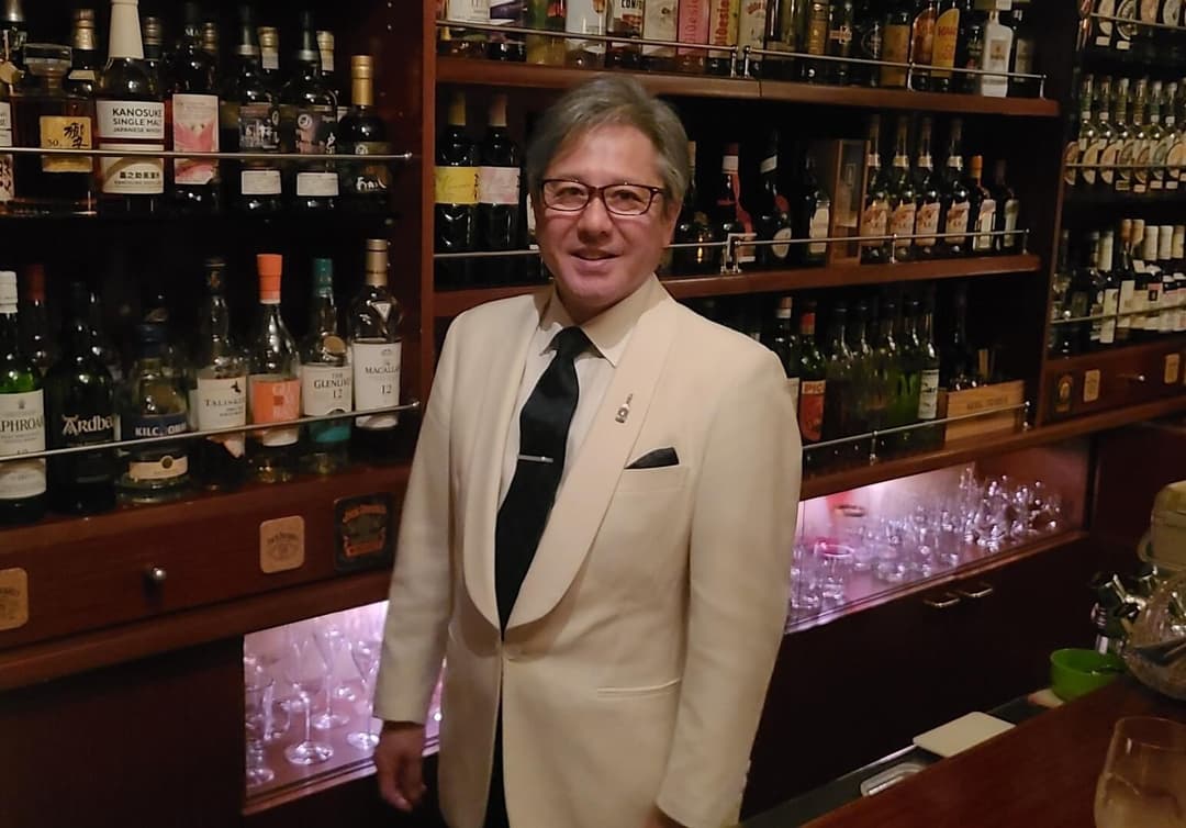 ドアを開けるとそこは都会的に洗練された素敵なBarの世界が広がっている。しかも昭和時代の懐かしの高級な雰囲気を味わえる大人の世界。小さい頃みていたウイスキーのTVCMは、女優の故大原麗子さんが和服割烹着姿で「少し愛して、なが~く愛して💞」と。どれくらいの世の殿方がこのCMにノックアウトされたか!?中には、サミー・デイビス・ジュニア気取りの粋な紳士を演じて飲んでいる人もいたのでは?氷をグラスに入れる音・ウイスキーをボトルからトクトクと入れる音。素敵な憧れの世界でした。寅谷さんの着ている白ジャケットの意味は、汚さないように仕事ができる証、一流になったという意味が込められているそうです。若干22歳で全国カクテルコンテスト優勝、その副賞がニューヨークでのホテル修行というから日本の高度成長期真っ只中、人々が豊かになった時代。昭和は遠くになりにけりの昨今、「非日常を感じていただきたい」と寅谷さんのお・も・て・な・しの姿勢が嬉しいですね。一流を味わうには、客としてのマナーも一流でありたいとポーズをとりながら、時には頑張っている自分のご褒美としてミクシー(ウイスキー)味わいに出かけましょう。