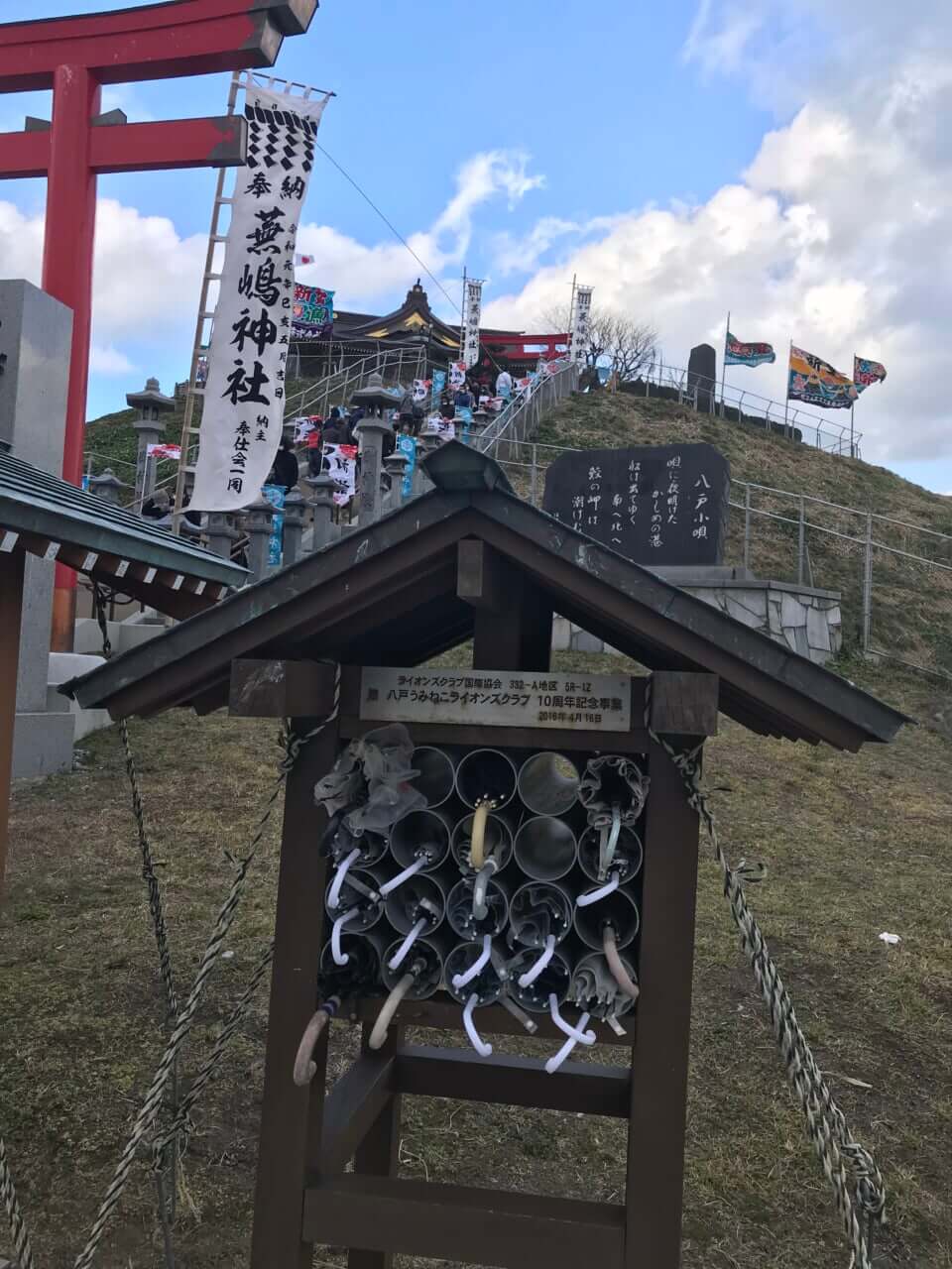 타네사시 해안에서 해안가를 따라 차를 타고 올라가다 보면, 이 신사를 볼 수 있습니다. 어업의 안전을 지켜주는 수호신으로서 오래전부터 지역 사람들에게 사랑 받아 온 곳으로, 신비롭게도 신사 주변에는 많은 갈매기 떼들이 터를 잡고 있었는데요. 그래서 신사로 올라가는 계단 앞에는 갈매기 똥을 피할 수 있도록 우산들이 놓여있기도 했습니다. 안타깝게도 2015년에 내부 화재로 인해 전소되고 말았지만, 그 후로 열심히 복원공사를 하여 마침내 2020년에는 재건에 성공하게 됩니다. 단청되지 않은 목조 건물과 붉은 도리이(신사의 출입문)가 바닷가의 풍경과 어울려 일본 특유의 차분한 멋을 느낄 수 있습니다.